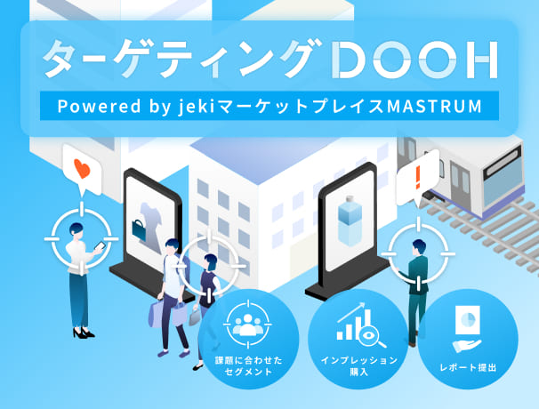 データに基づくプログラマティック取引にも対応するプラットフォームで、時間・場所・人をターゲティングし、交通広告の主要媒体をWeb広告のようにインプレッション単位で運用できるサービス。