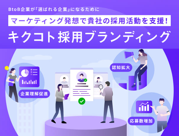 企業の採用ブランディングを戦略設計からクリエイティブ制作、効果測定まで一貫してサポート。多数の実績と独自のプランニングシステムをもとに、課題に応じた最適なプランをご提案します。