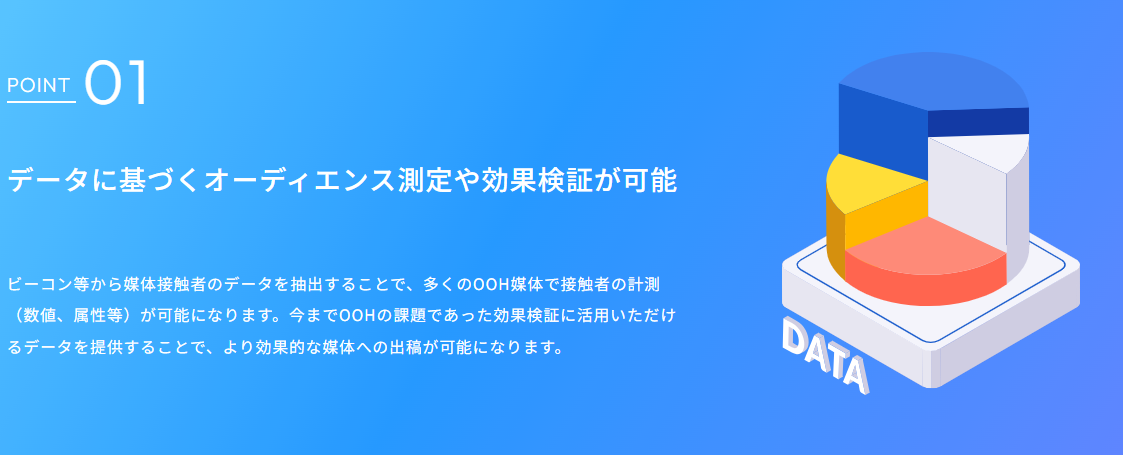 OOHは効果測定ができないことがネックでしたが、DOOHでは測定技術が進化しています。広告の視認率や接触人数などのデータが取得できるようになり、DOOHが注目される要因の一つとなっています。