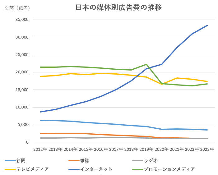 とは言え現在でも、7兆円の全体広告費の中で25%を占める1兆7000億円という大きな金額です。依然として非常に大きなメディアであることに変わりはありません。
