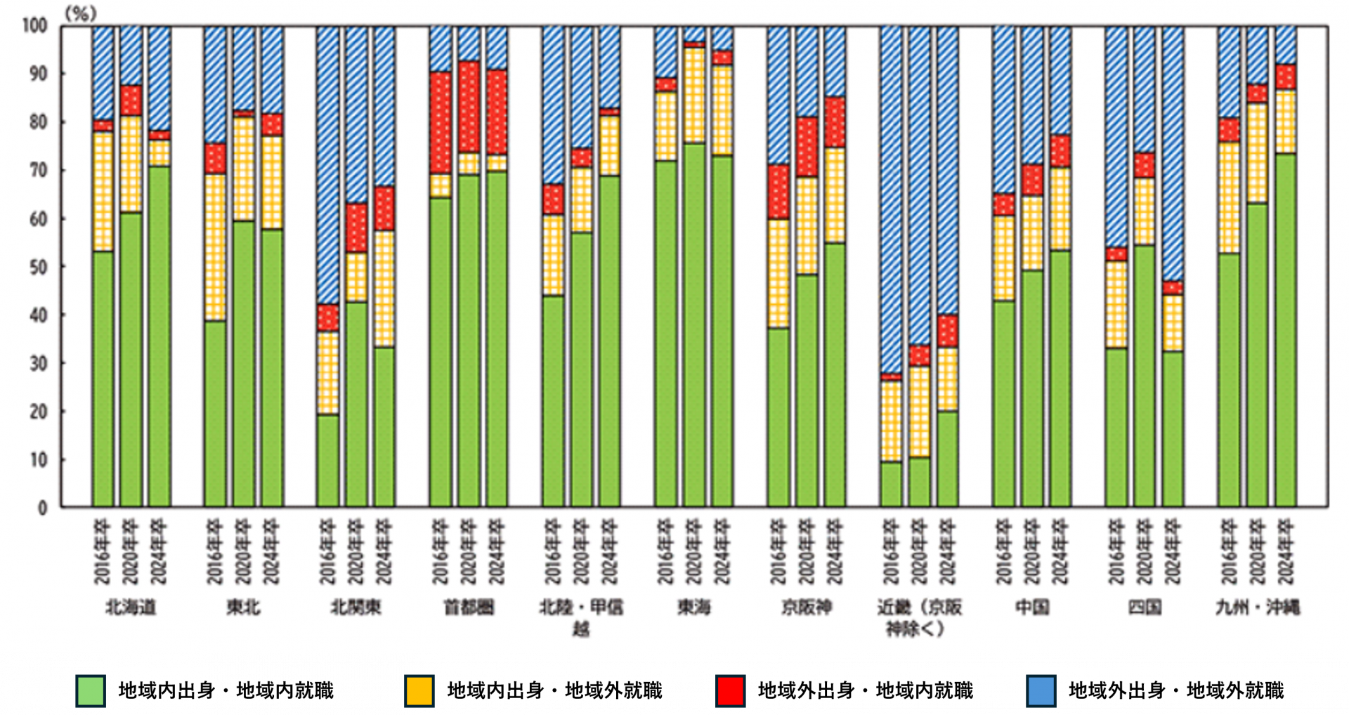 ※上図の地域内出身(就職)とは、出身(就職)地と大学のキャンパス所在地が同じ地域内であることを指します。