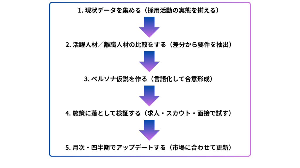おすすめは「活躍人材」と「離職人材」を比較し、抽象語ではなく“事実”からペルソナを作る方法です。