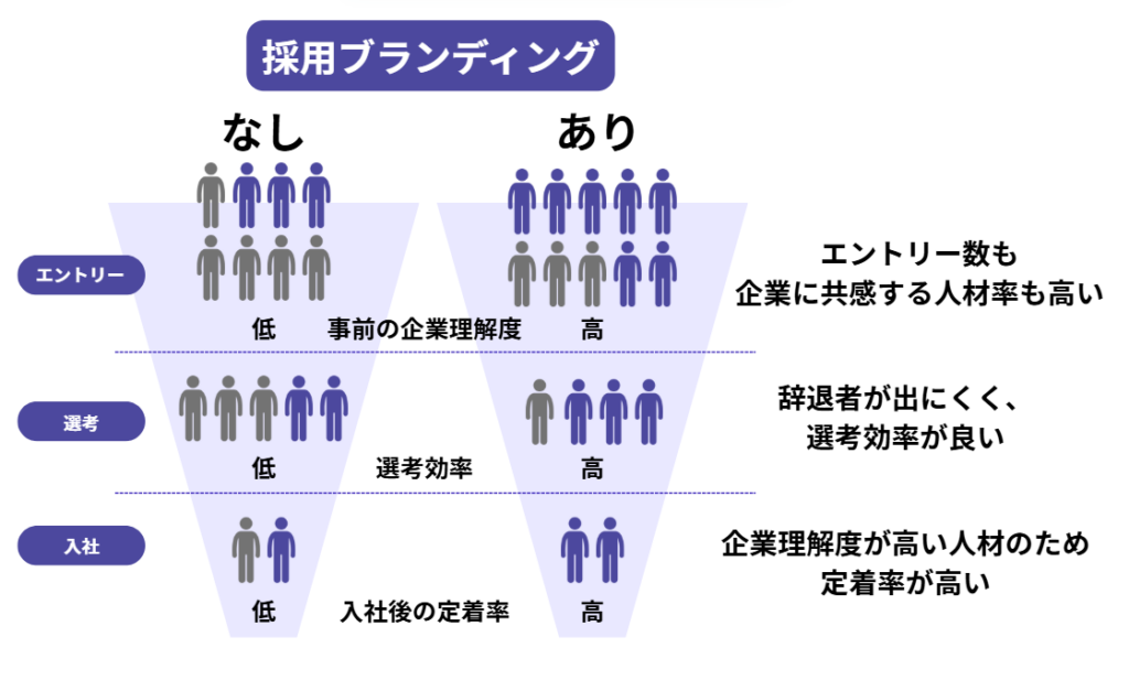 採用ブランディングの最大のメリットは、自社に興味を持ち、応募してくれる可能性のある求職者(=母集団)の質と量を高められることです。