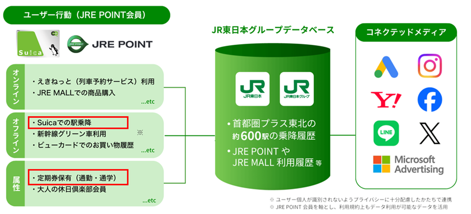 「JRE Ads」は、JR東日本グループが保有するSuicaの利用データや購買データなど、生活動線に基づく情報を活用したWeb広告サービスです。