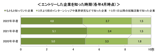 新卒採用においては、「早期に接点を持った企業ほど学生の印象に残りやすい」といえます。