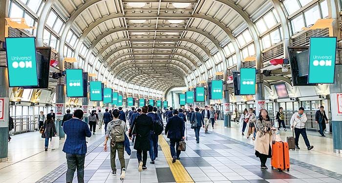 OOH(Out of Home)広告とは、駅構内・電車内などの交通広告や街頭ビジョンなど、屋外で掲出する広告を指します。