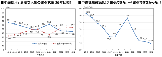 出典:株式会社インディードリクルートパートナーズ「中途採用実態調査」(2024年度実績、正規社員)(https://www.works-i.com/surveys/item/250617_midcareer.pdf)