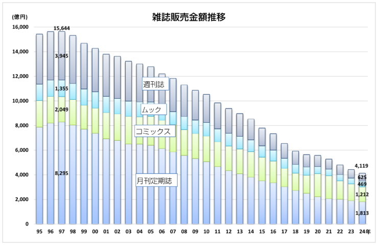 Webメディアの増加などに伴い、雑誌の販売金額は減少傾向にあり、雑誌広告だけで大量のユーザーに広告を届けることは、かつてに比べて難しくなっています。そのため、雑誌広告で成果を出すためには、自社商材・サービスとの親和性を踏まえた、より慎重な掲載雑誌の選定が大切になっています。