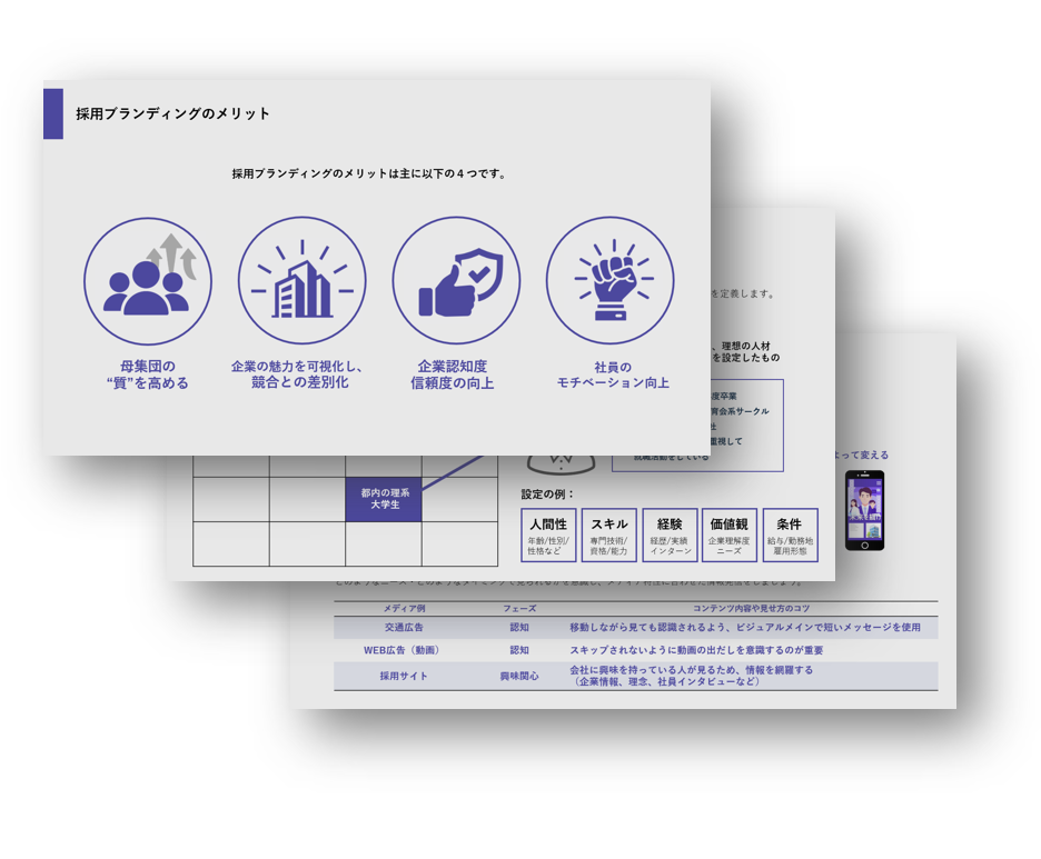 これから「採用ブランディング」を始めるBtoB企業の採用担当者さまにおすすめ。採用市場の現状や、採用ブランディングのメリット・進め方までわかりやすく解説しています。 ※本資料の内容、テキスト、画像等の無断転載・無断使用はご遠慮ください。