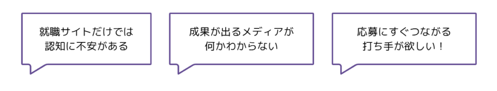 就職サイトだけでは不安/成果が出るメディアがわからない/応募につながる打ち手が欲しい