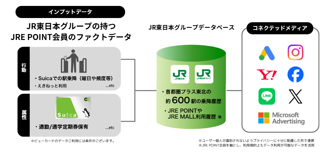 【Suicaでの移動データ】や【オウンドメディア内購入データ】などを